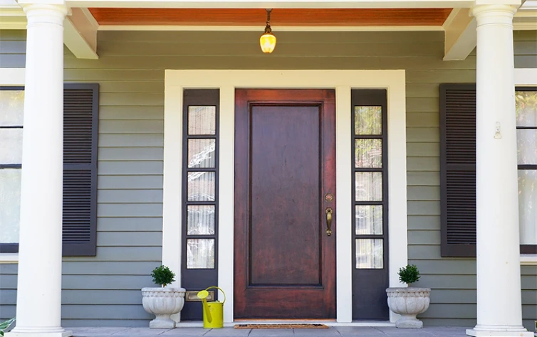 Para quem não quer arriscar na cor, essas portas são mais neutras e garantem um estilo sofisticado para os moradores. As plantas na entrada ajudam a dar um clima ainda mais acolhedor.