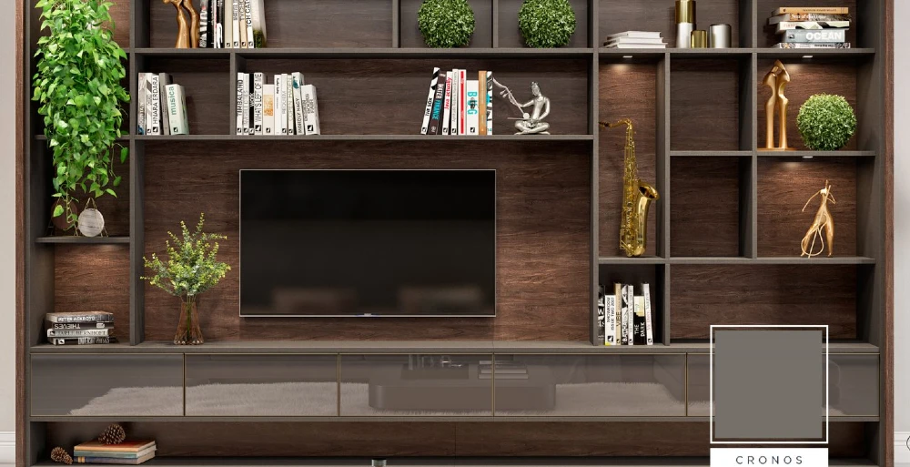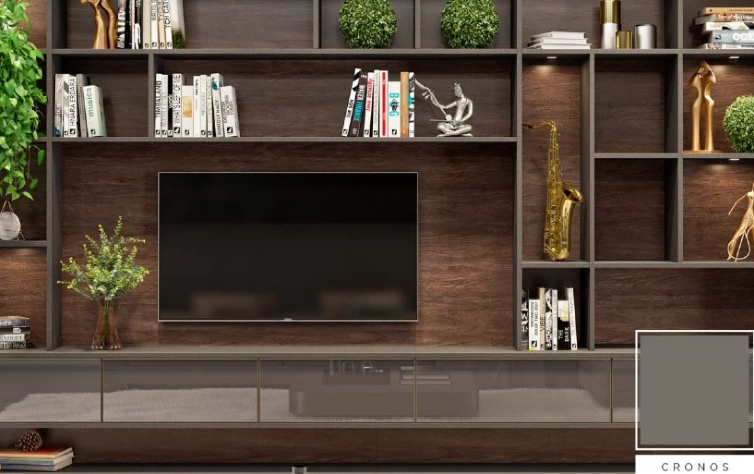 Por ser mais neutro, o Cronos tem diversas possibilidades de combinações dentro da sua cartela. A tonalidade mais escura é apropriada para deixar o ambiente mais sóbrio e discreto.