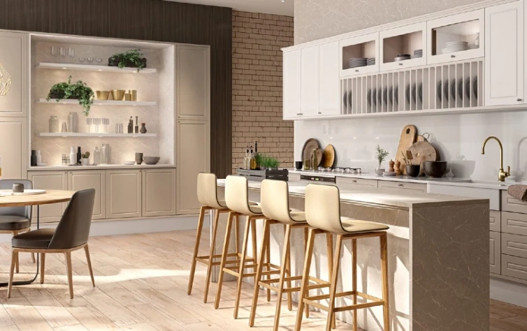 O acabamento do padrão permite que a elegância do mármore esteja presente em diversos ambientes da casa – desde a cozinha, até o home.