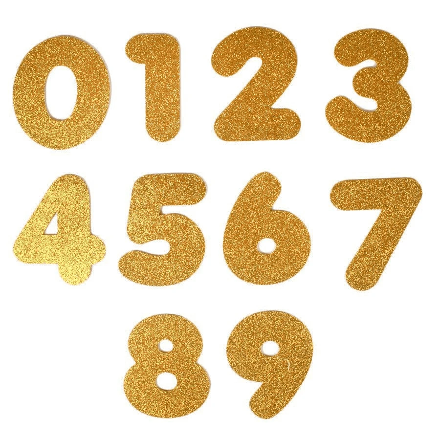 Essa aqui é um encanto: pegue algumas garrafas usadas, higienize-as e pinte com tinta spray dourada. Faça os números em papel emborrachado com brilho e cole nas garrafas. Se quiser, pode decorar com glitter também!