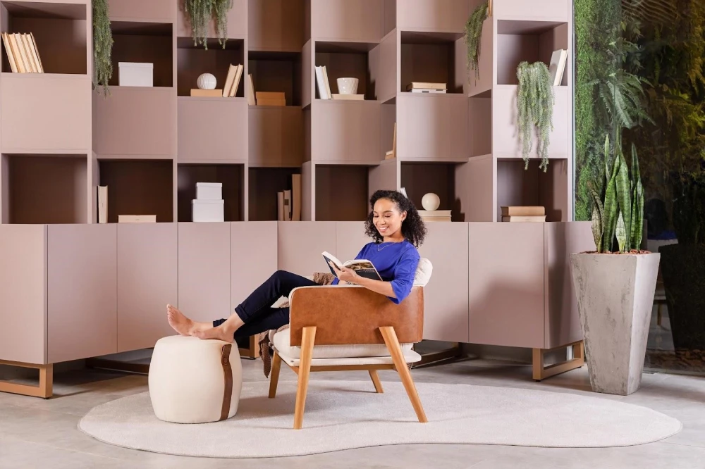 É essencial que sua biblioteca tenha um bom local para acomodar as pessoas durante a leitura. Para isso, você pode apostar em poltronas reclináveis, cadeiras ou até mesmo pufes.